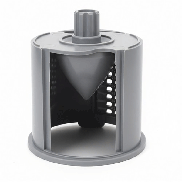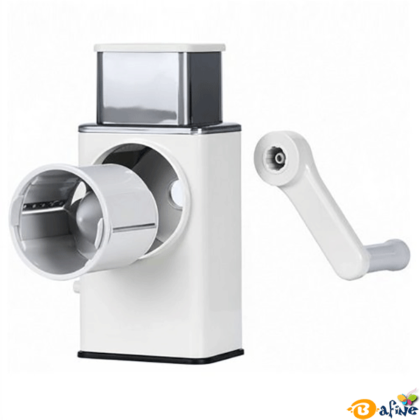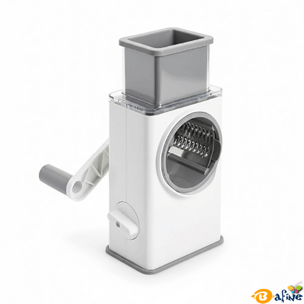 تیغههای تیز از جنس استیل ضد زنگ: قلب تپنده این دستگاه، 4 تیغه استوانهای از جنس استیل ضد زنگ (Stainless Steel) است. این تیغهها نه تنها در برابر زنگزدگی و خوردگی مقاوم هستند، بلکه تیزی خود را برای مدت طولانی حفظ کرده و به راحتی انواع مواد غذایی از سبزیجات سخت مانند هویج و سیبزمینی گرفته تا پنیر پیتزا و خشکبار را رنده میکنند.