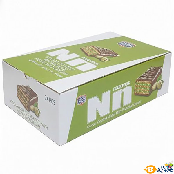 ویفر با مغز پسته و روکش کاکائو پوک پوک بسته ۲۴ عددی